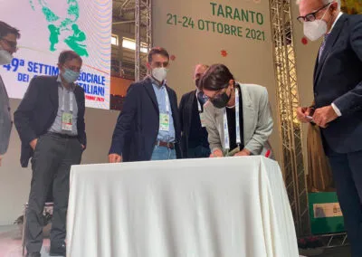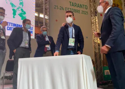 Da Taranto, infatti, riparte un impegno fattivo per coniugare ambiente, lavoro, sviluppo, a cominciare dalle “buone pratiche” già esistenti sui territori e con la volontà di camminare insieme, nella consapevolezza che – come ha sottolineato Mons. Filippo Santoro, Arcivescovo di Taranto e Presidente del Comitato scientifico e organizzatore – “il cambiamento non avviene solo dall’alto, ma è fondamentale il concorso della nostra conversione negli stili di vita come singoli cittadini e come comunità”. Ecco allora che è necessario “costruire comunità energetiche, diventare una società carbon free e votare col portafoglio per premiare le aziende capaci di intrecciare valore economico, dignità del lavoro e sostenibilità ambientale, promuovere e utilizzare prodotti caporalato free, creare alleanze intergenerazionali e con la società civile”. “Sarà nostro dovere – ha affermato Mons. Santoro – impegnarci perché le giuste istanze, le proposte, il manifesto dei giovani, trovino piena accoglienza e realizzazione: non abbiamo più tempo! Abbiamo visto che possiamo realizzare il mondo diverso che abbiamo troppo a lungo solo immaginato mentre si perpetravano scelte di politica economica e sociale che hanno creato divari profondissimi tra gli uomini e oltraggiato la Terra”.