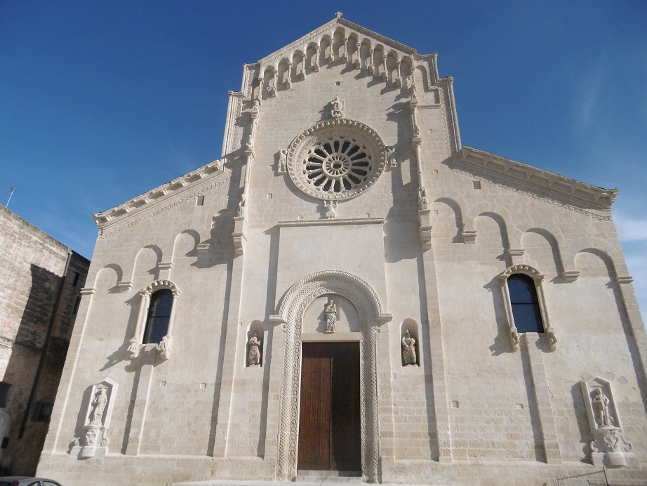 La Cattedrale di Matera, la cui costruzione fu terminata nel 1270, fu edificata, in stile romanico pugliese, nel punto più alto della città, in modo da svettare sui Sassi Barisano e Caveoso. Sorse sull’area di un monastero benedettino dedicato a S. Eustachio e consacrato nel 1082.