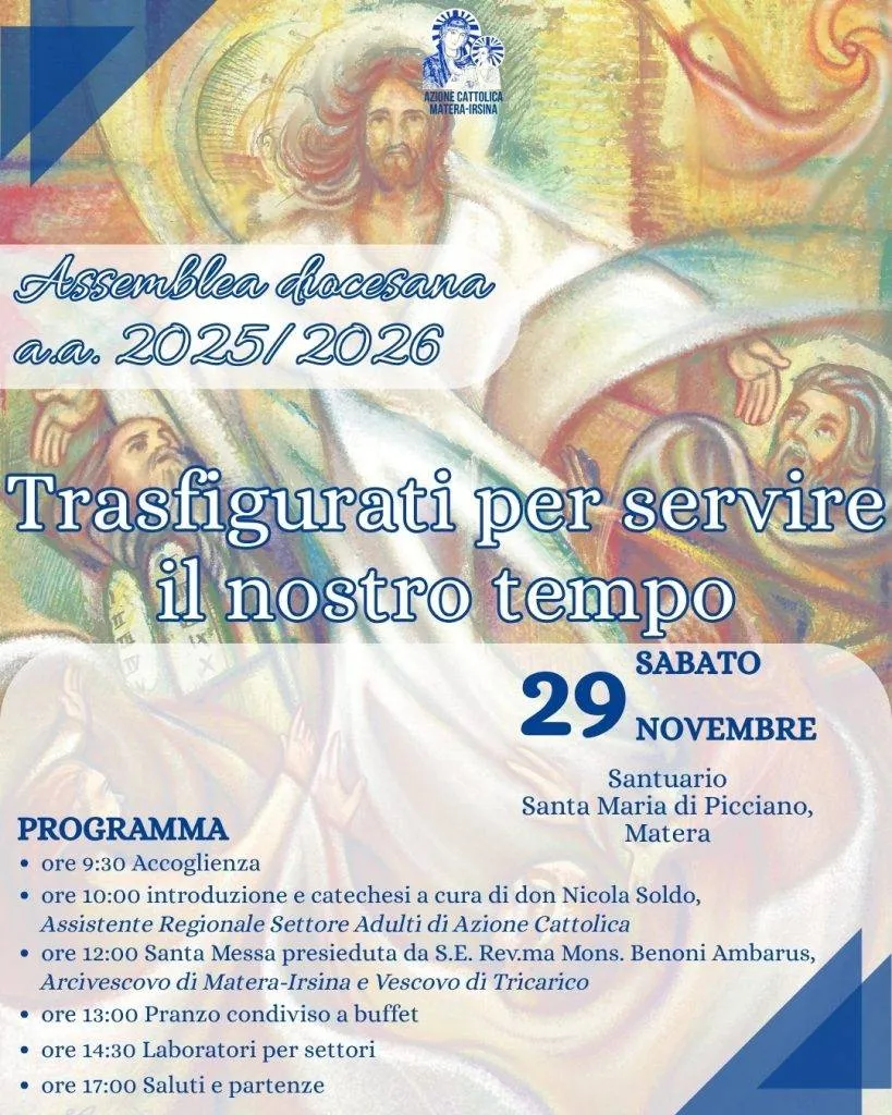 L’Azione Cattolica della diocesi di Matera-Irsina inaugura il nuovo anno associativo con una grande assemblea diocesana, in programma sabato 29 novembre presso il Santuario di Picciano.