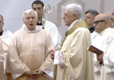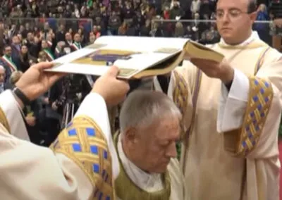 Saluto ognuno di voi e in particolare tutti i confratelli vescovi qui presenti e quanti sono spiritualmente in comunione manifestando la loro gioia e vicinanza. Un saluto particolare al neo eletto vescovo di S. Marino-Montefeltro, Mons. Mimmo Beneventi, figlio dell’Arcidiocesi di Acerenza.