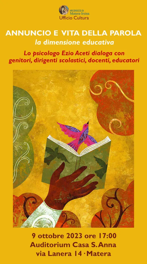 Sono alcuni dei temi attorno ai quali ruoterà l’incontro proposto dall’Ufficio Cultura della Diocesi di Matera/Irsina e rivolto a genitori, insegnanti, ma anche studenti, educatori e catechisti.