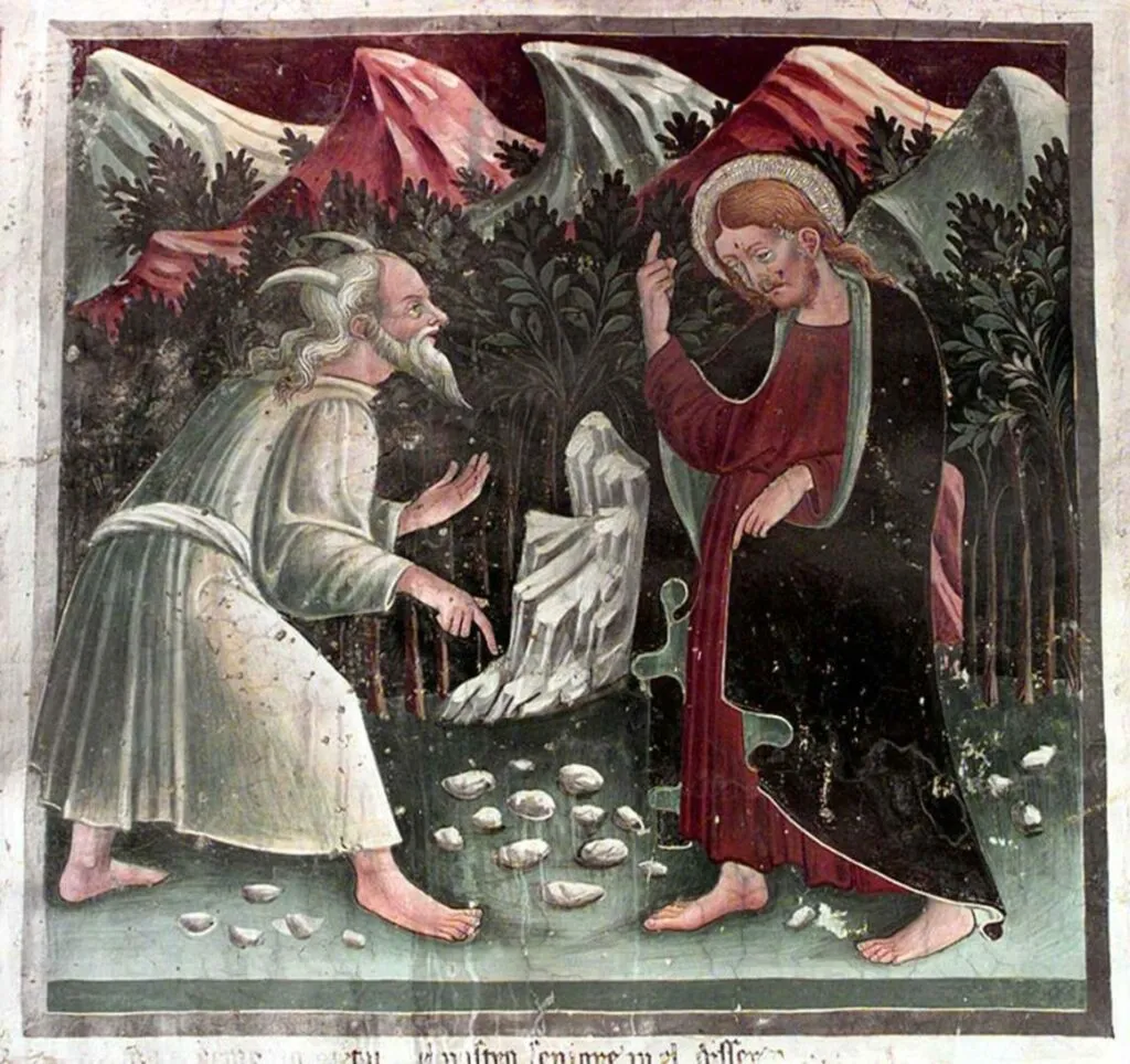 San Pietro nella sua prima lettera spiega che il Figlio di Dio incarnandosi è sceso fino agli inferi dove sono le anime prigioniere del peccato per annunciare loro la salvezza e inaugurare nel deserto, in cui Satana sembra avere il dominio, la via per il ritorno al Padre.