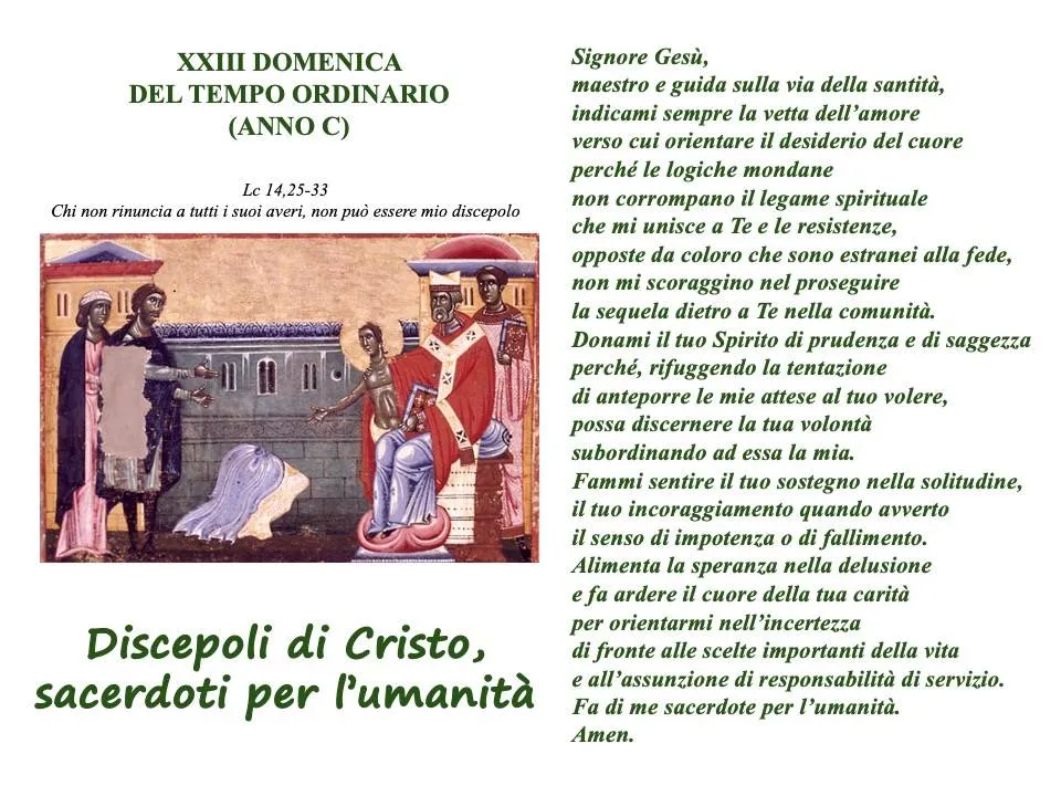 XXIII DOMENICA DEL TEMPO ORDINARIO (ANNO C) – Lectio divina