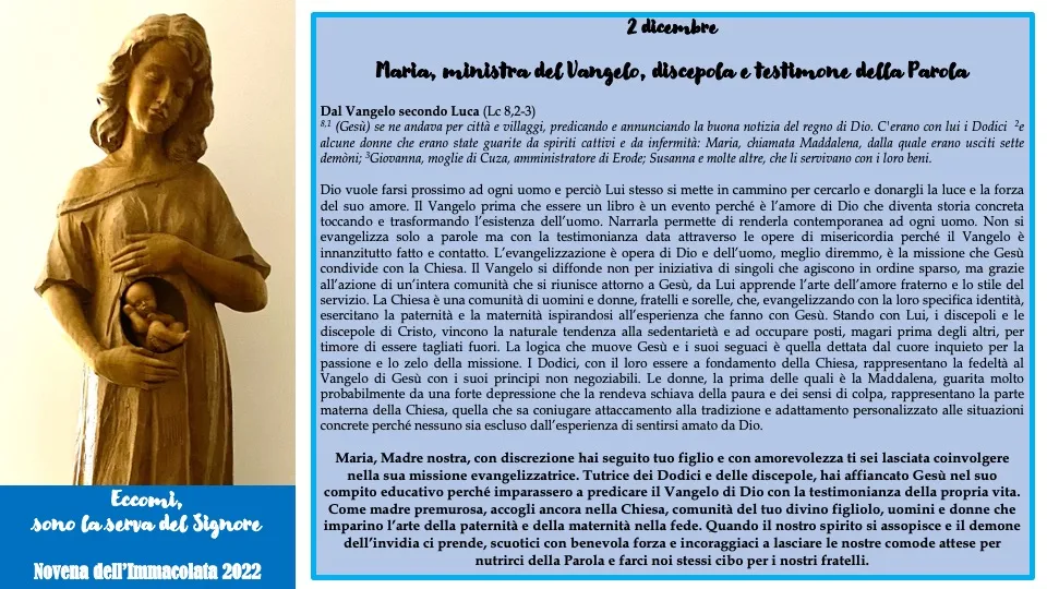 02 dicembre – Maria, ministra del Vangelo, discepola e testimone della Parola