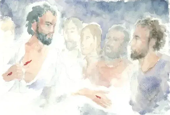 Nel racconto di Maria Maddalena, che precede la nostra pericope, il Risorto si fa riconoscere chiamandola per nome: “Maria!” (Gv 20,16). È un particolare di grande rilievo, perché mostra che la Pasqua non inaugura un rapporto impersonale con Cristo, ma una relazione nuova, più profonda, in cui il discepolo è raggiunto nell’intimo della sua identità. Maria vorrebbe trattenere Gesù, ma il Signore le indica un cammino diverso, non possederlo, bensì annunciarlo; non fermarsi al passato, ma comprendere che egli “sale al Padre suo e Padre vostro” (cf. Gv 20,17). La risurrezione, per Giovanni, non è semplicemente il ritorno alla vita terrena, ma il compimento del passaggio di Gesù al Padre, nel quale i discepoli vengono coinvolti. Il Risorto non torna indietro, ma apre una via; non viene per ripristinare una situazione precedente, ma per introdurre i suoi in una condizione nuova.