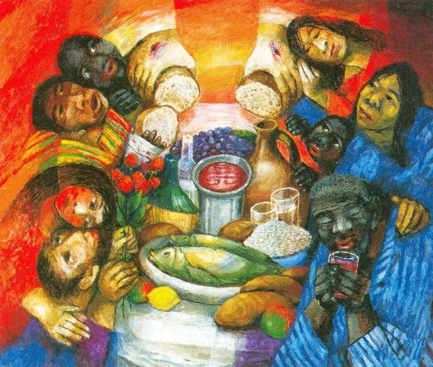 Come la Samaritana che chiede a Gesù l’acqua viva per non andare più ad attingerla al pozzo, così la gente chiede il pane di cui parla per risolvere una volta per tutte il problema della fame e del modo con cui soddisfarla. Nel racconto delle origini il lavoro è legato alla schiavitù perché è lo strumento con cui con fatica «ci si guadagna la vita». L’uomo sperimenta quanto sia insufficiente il suo sforzo e la sua opera per vivere e quanto sia decisivo l’aiuto di Dio. Per questo la gente prega Gesù, chiamandolo con l’appellativo divino di Signore, per chiedergli non più la manna, il pane dal cielo, ma il pane del cielo. La sua risposta suona come una risposta all’appello della gente: «Eccomi … io sono il pane della vita». Riecheggiando alcuni testi sapienziali (Pr 9, 1-6, Sir 24,18-21, Is 55,1-3) nei quali la Sapienza invita ad accogliere l’invito al banchetto festoso preparato da lei e nel quale essa stessa si offre come cibo, Gesù si identifica con la Sapienza, espressa nell’immagine del «pane della vita». Chi accoglie l’invito e si accosta alla mensa della Sapienza diventa suo discepolo. Tuttavia, le parole di Gesù si differenziano da Sir 24,21 in cui la Sapienza, che fa l’elogio di sé e si definisce «la madre del bell’amore e del timore, della conoscenza e della santa speranza» (v.18), afferma: «Quanti si nutrono di me avranno ancora fame e quanti bevono di me avranno ancora sete». Il Libro del Siracide vuole affermare che chi ha incontrato il Signore non lo abbandona più perché la relazione con Lui attiva un dinamismo in cui è mantenuto sempre vivo il desiderio che non può dirsi mai del tutto soddisfatto. Gesù non contraddice il Siracide ma vuole affermare che la relazione con lui cambia la vita del discepolo che non è spinto ad agire per bisogno o per dovere ma dalla forza dell’amore che gli conferisce il pane della vita di cui si nutre. La Parola, Sapienza di Dio, pane della vita, che è Gesù, possiede una forza creatrice. Dio ha creato tutto con la Parola e grazie ad essa tutto sussiste. Gesù è il pane della vita perché è la Sapienza di Dio creatrice ed è la Parola grazie alla quale l’uomo vive perché non vive più solo per sé stesso ma fa della sua vita un dono, come il Pane della vita.