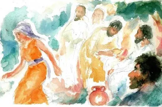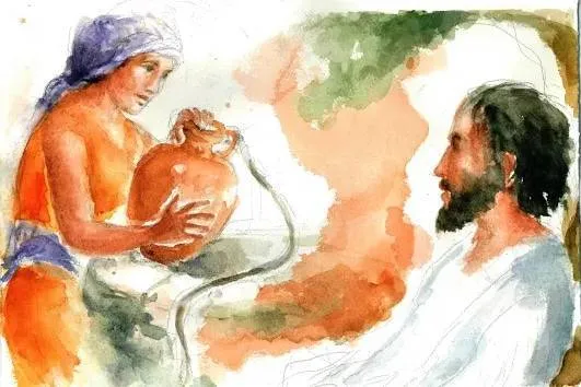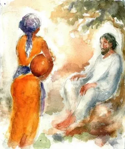 La narrazione procede restringendo progressivamente lo sguardo: dalla regione della Samaria alla città di Sicar, dal terreno donato da Giacobbe a Giuseppe (Gen 48,22), fino al pozzo di Giacobbe, luogo carico di memoria biblica. Nella Scrittura il pozzo è spesso scenario di incontri sponsali: Isacco e Rebecca (Gen 24), Giacobbe e Rachele (Gen 29), Mosè e Sefora (Es 2). Il pozzo diventa, il luogo dell’incontro tra Gesù, affaticato, e la donna Samaritana che va attingere l’acqua in un’ora insolita. Essi, pur essendo differenti per sesso, appartenenza sociale e religione, e addirittura nemici, tuttavia li accomuna la sete e il desiderio di soddisfarla. Giovanni lascia intuire che qui si compie un incontro nuziale nuovo: Gesù è lo Sposo messianico che viene incontro al suo popolo.