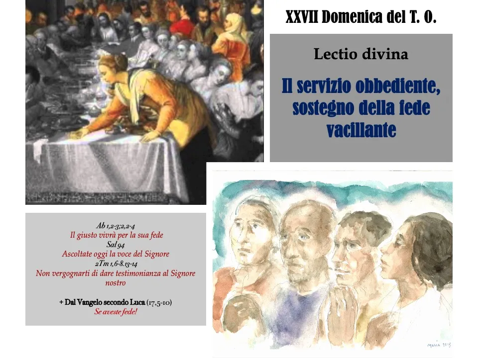 I discepoli recepiscono quanto distante sia il loro modo di pensare da quello di Gesù, perciò gli chiedono: aumenta la nostra fede! Probabilmente gli apostoli richiedono un surplus d’intelligenza per comprendere la logica nuova indicata da lui. La prima lettura ci offre una chiave di lettura per comprendere più profondamente la richiesta dei discepoli. Essi, come il profeta Abacuc, rivolgono una preghiera. La supplica si eleva da un cuore e una mente confusi. Il profeta, portavoce del turbamento del popolo che proietta in Dio il suo senso di giustizia, non comprende perché non intervenga prontamente contro i malvagi dando loro la punizione che si meritano. I discepoli, parimenti, hanno difficoltà ad accettare la pedagogia di Gesù che invita ad accogliere i peccatori, anzi a cercarli, ad abbracciarli, a conquistarli con la benevolenza, a perdonarli ogni volta che riconoscendosi colpevoli, chiedono pietà. Le parole del profeta sembrano una sfida lanciata verso il Dio silenzioso e apparentemente assente. Quelle dei discepoli esprimono la consapevolezza della loro povertà. La preghiera dell’uno e degli altri rivela la loro fede sebbene debole come una fiammella che Gesù però riconosce anche potenzialmente feconda.