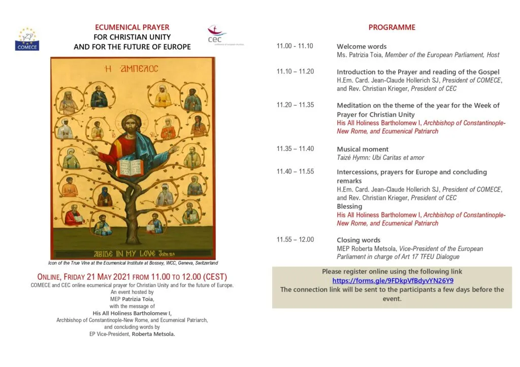 Invito alla preghiera per l’unità dei cristiani – 21 maggio 2021 Ufficio per l’Ecumenismo e il dialogo interreligioso