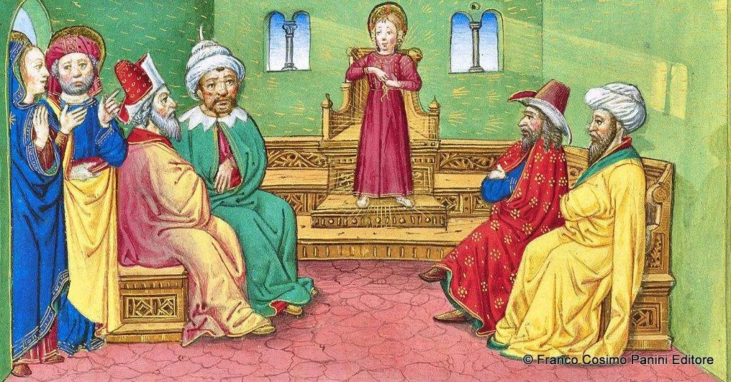 Gesù è ritrovato dai genitori nel tempio in mezzo ai maestri.