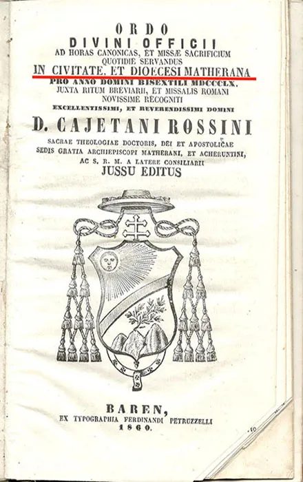 Gattini Giuseppe, Note storiche sulla città di Matera, Stabilimento Tipografico A. Perrotti & C., Napoli 1882, p. 249.