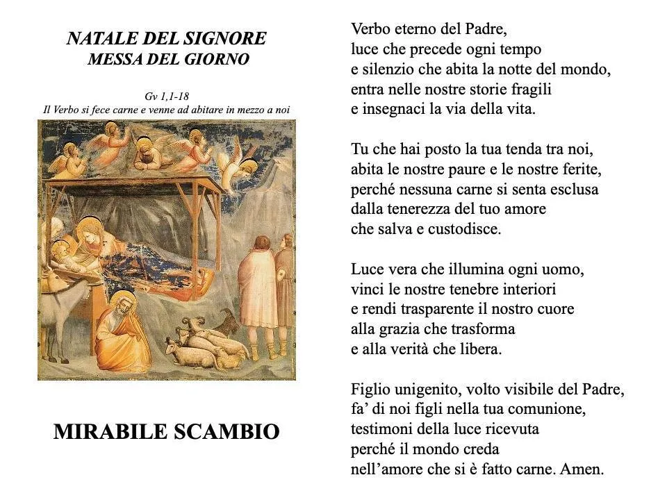 Il Prologo di Giovanni ci pone davanti a una rivelazione che coinvolge l’intera esistenza. Se il Verbo si è fatto carne, allora nessuna dimensione della vita umana è estranea a Dio. Egli non salva dall’esterno, ma dall’interno; non ci sottrae alla fragilità, ma la assume. Questo cambia radicalmente il nostro modo di guardare a noi stessi e al mondo: la carne non è un ostacolo alla comunione con Dio, ma il luogo in cui Dio si lascia incontrare.