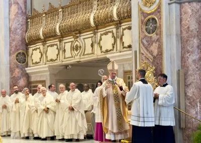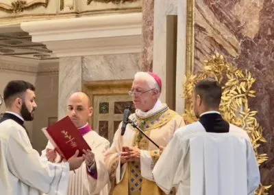 Sono grato al Signore per questa celebrazione che la paternità e l’affetto dell’arcivescovo Pino mi permette di presiedere. Come sacerdote materano di questa chiesa sono orgoglioso e onorato, contento e ringrazio la Madonna della Bruna per avermi sempre accompagnato nella fede e vita cristiana. Ringrazio i confratelli sacerdoti, tutti i seminaristi, la chiesa materana; ringrazio le autorità civili e militari e tutto il popolo di Dio, sempre affettuosi e accoglienti del mio cammino e della mia presenza.