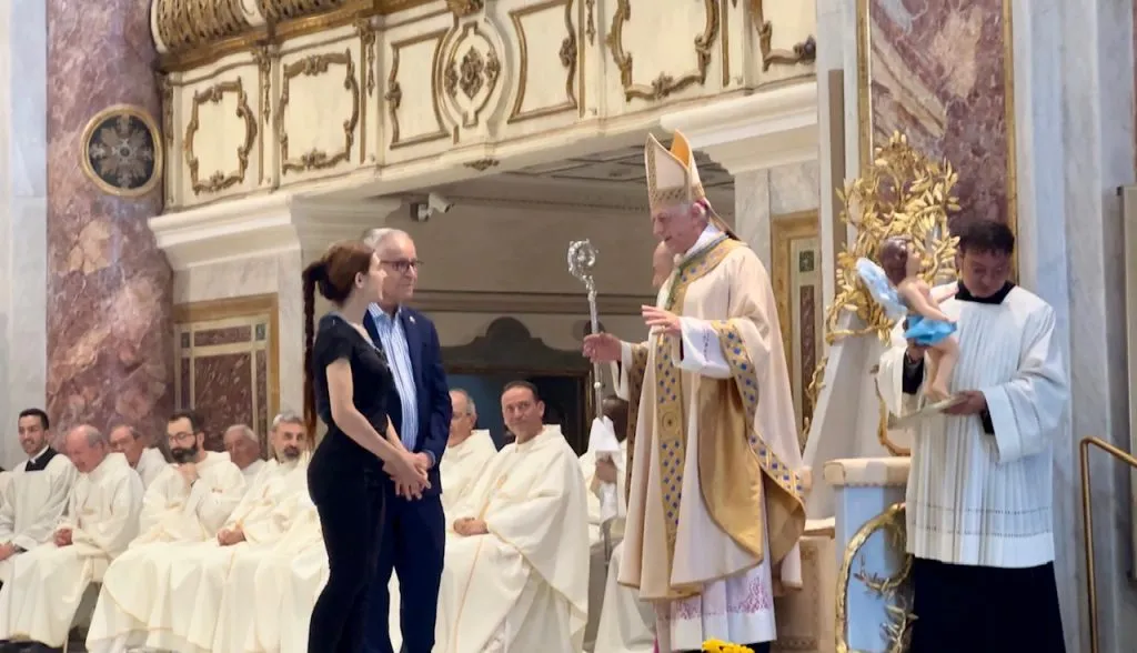 La festa allora sia occasione di fraternità e condivisione di impegni e servizio come per le associazioni coinvolte dei Pastori, degli Angeli del carro, dei Cavalieri, del Comitato e dei tanti che in vario modo preparano e organizzano la festa, qui in Cattedrale, nella chiesa di Piccianello, per le strade le forze dell’ordine e così via.
