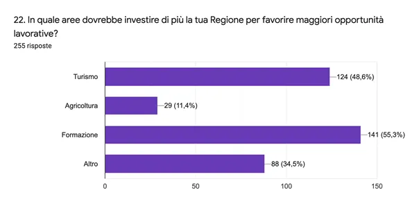 In quali aree dovrebbe investire di più la tua Regione per favorire maggiori opportunità lavorative?