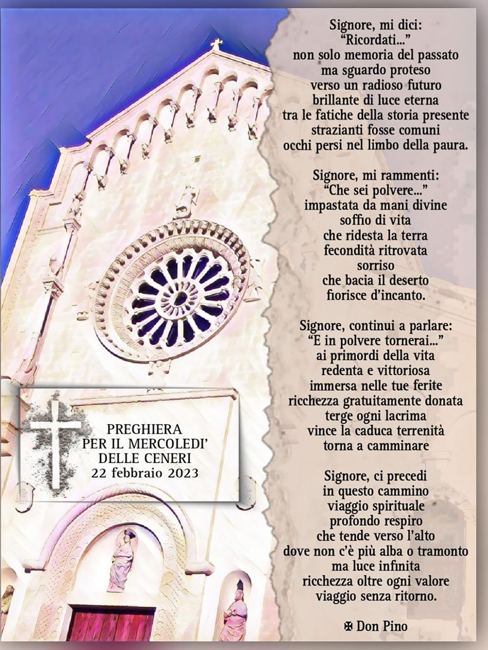 «…Signore ci precedi in questo cammino, viaggio spirituale, profondo respiro che tende verso l’alto…». Preghiera composta da S. Ecc. l’Arcivescovo per il Mercoledì delle Ceneri