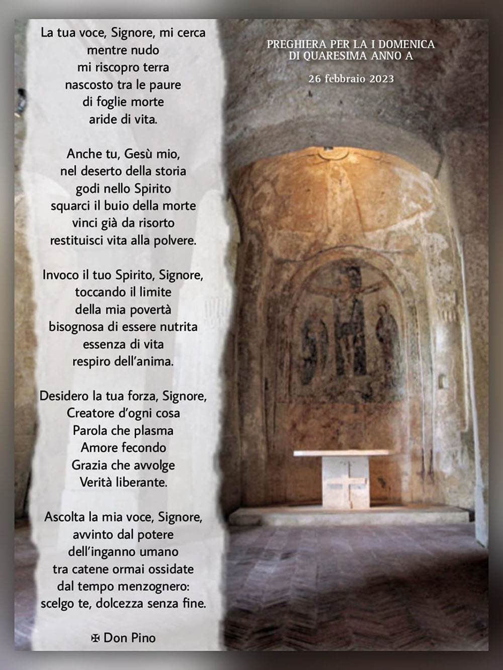 «… avvinto dal potere dell’inganno umano, tra catene ormai ossidate dal tempo menzognero: scelgo te, dolcezza senza fine». Preghiera composta da S. Ecc. l’Arcivescovo per la Prima Domenica di Quaresima