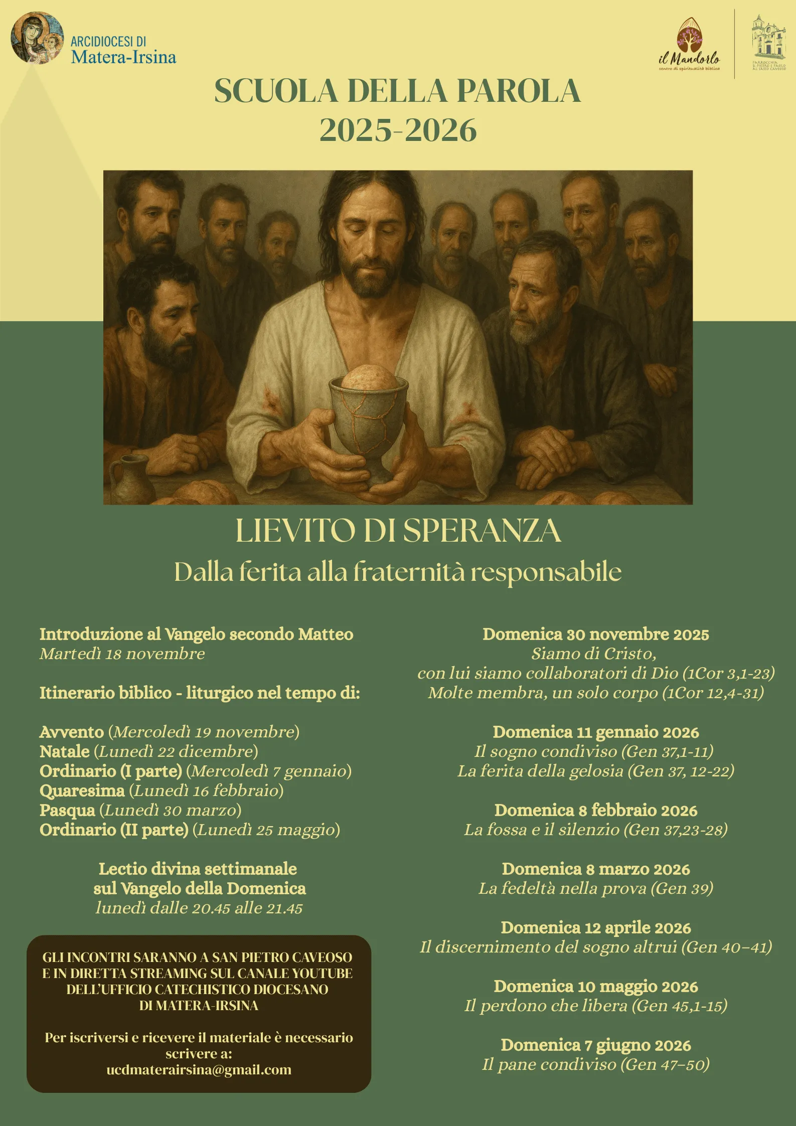 Gli incontri si terranno a San Pietro Caveoso in Matera e in diretta streaming sul Canale Youtube dell’Ufficio Catechistico diocesano di Matera-Irsina.