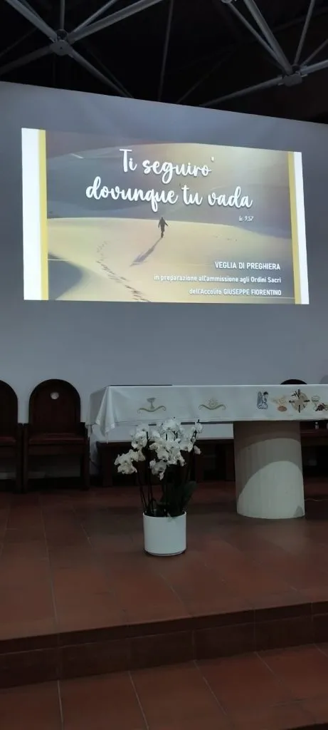 Introduzione: La vocazione è il progetto che Dio ha pensato perché ognuno di noi arrivasse alla sua pienezza. Essa nasce da un incontro con Dio, da una voce che il Signore può rivolgere a ciascuno di noi. Se apriamo il nostro cuore all’ascolto della Sua Parola riusciamo ad entrare nella profondità dell’amore di Dio e a riconoscere quello che è il suo progetto per noi. È ciò che vivono i giovani chiamati al sacerdozio o alla vita consacrata, ciò che vivono due giovani fidanzati nel momento in cui sentono la vocazione al matrimonio e scelgono di vivere l’amore coniugale come segno sacramentale. E ancora, è ciò che sono chiamati a vivere i laici nel momento in cui Dio li chiama a qualcosa di più grande, chiede loro di andare oltre, di rischiare e mettersi in gioco con coraggio per realizzare e far crescere il suo Regno testimoniando il Suo Amore. Questa sera la nostra comunità è raccolta in preghiera per Giuseppe, chiamato da Dio ad essere testimone della Sua Parola e del Suo Amore. Vogliamo accompagnarlo nel suo percorso vocazionale perché con coraggio possa dire il suo “eccomi” a Dio Padre. Ci disponiamo a vivere questo momento di preghiera cantando insieme il canto d’ingresso.