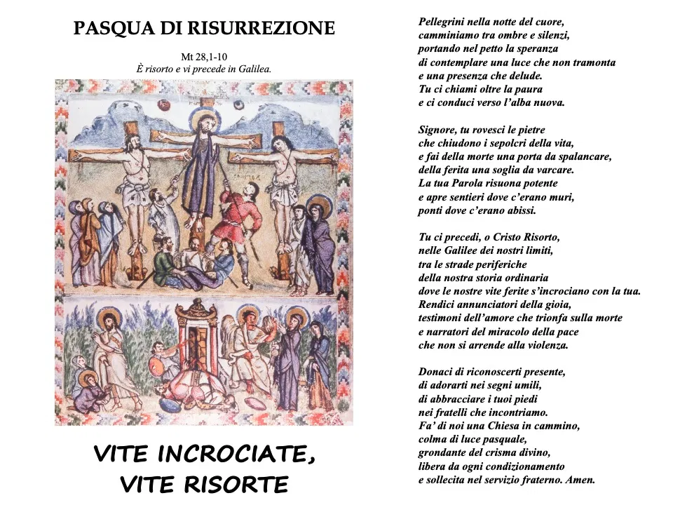 Così anche noi siamo chiamati a passare dalla tomba alla strada, dalla paura all’annuncio, dalla ricerca alla comunione. Perché la Pasqua non è solo un rito da celebrare, ma una esperienza d’incontro da fare, vite che s’incrociano per amarsi e non più dividersi.