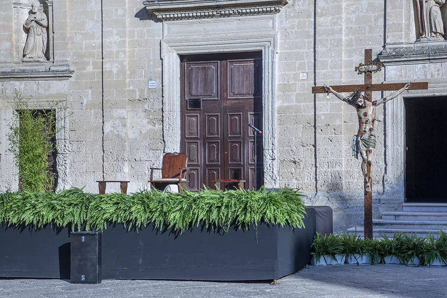 Ha fatto seguito, alle ore 17.30, la Via Lucis Eucaristica, che dalla Chiesa della Madonna de Idris si è diretta in piazza San Pietro Caveoso dove è stato collocato il Crocifisso ligneo del ‘600 restaurato per iniziativa della Cooperativa “Oltre l’Arte”.