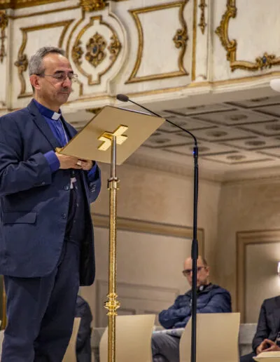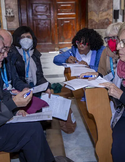Il Cammino sinodale è prima di tutto movimento di Chiesa, cambiamento, conversione dei discepoli, liberazione da ciò che non odora di Vangelo, da ciò che non ha il gusto del pane, suo Corpo donato. Il Cammino sinodale trova il suo paradigma nella Celebrazione eucaristica, che è come un Sinodo concentrato: è un popolo radunato per riconoscersi peccatore – siamo peccatori in cammino –, per bagnarsi nella freschezza dell’ascolto di una Parola intramontabile, per rigenerarsi alla mensa del pane e del vino, per rinsaldare la fraternità, per intrecciare la vita quotidiana con “ciò che lo Spirito dice alle Chiese” e con il pane che lo Spirito stesso rende Corpo di Cristo; un pane che la Chiesa, resa a sua volta Corpo dall’Eucaristia, deve spezzare con tutti – specialmente con i troppi Lazzaro esclusi dalle mense dei ricchi – se vuole essere fedele alla chiamata del suo Signore.