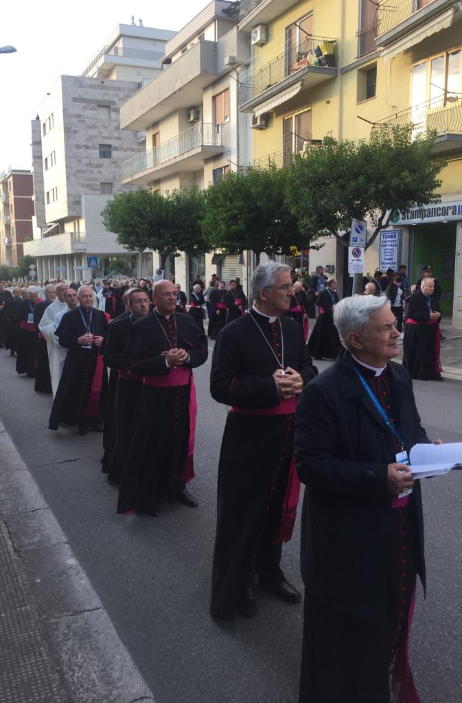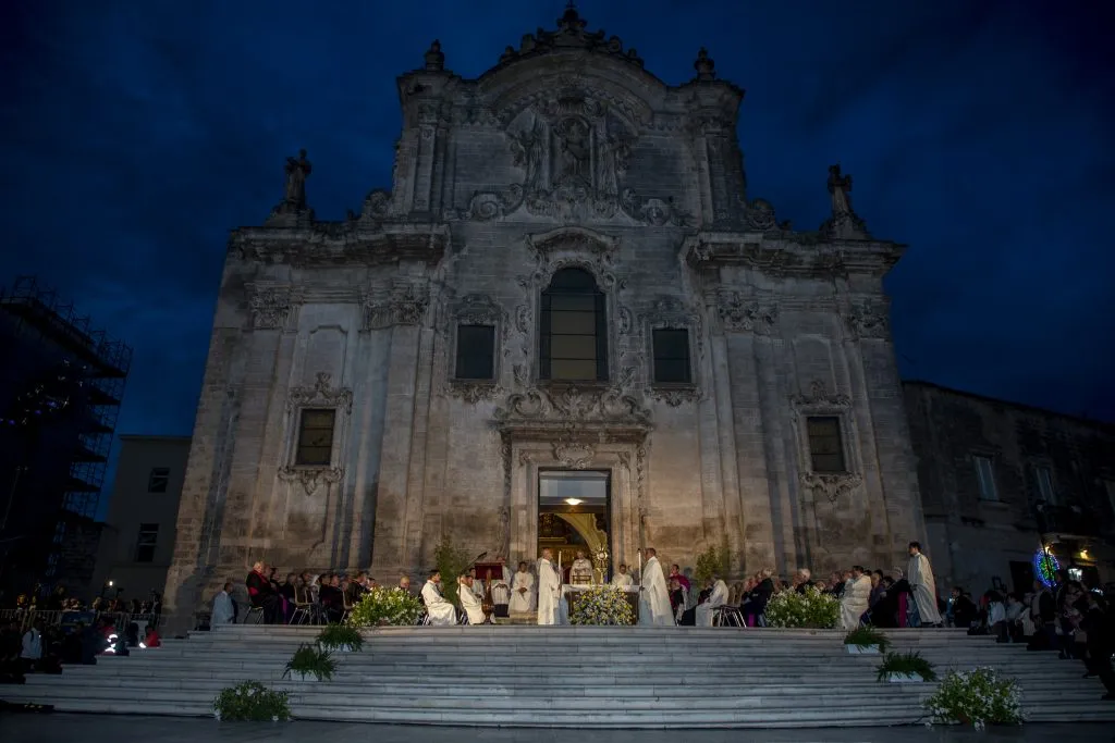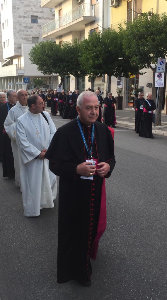 È per me una profonda gioia essere qui a Matera, città dalla storia ricca e affascinante, in occasione del XXVII Congresso Eucaristico Nazionale. Sono felice di poterVi salutare a nome del Santo Padre Francesco, che domani sarà tra noi, per l’atto liturgico conclusivo di questo Incontro. Ringrazio il Vostro Arcivescovo Antonio per il fraterno invito e ciascuno, sacerdoti, diaconi, catechisti, ministri dell’Eucaristia e Voi, fratelli e sorelle in Cristo, per la Vostra presenza e l’amore che manifestate per Gesù presente nel Santissimo Sacramento.