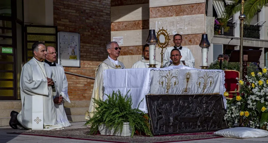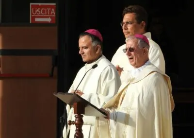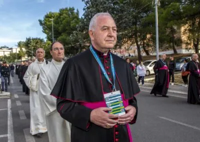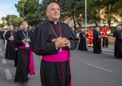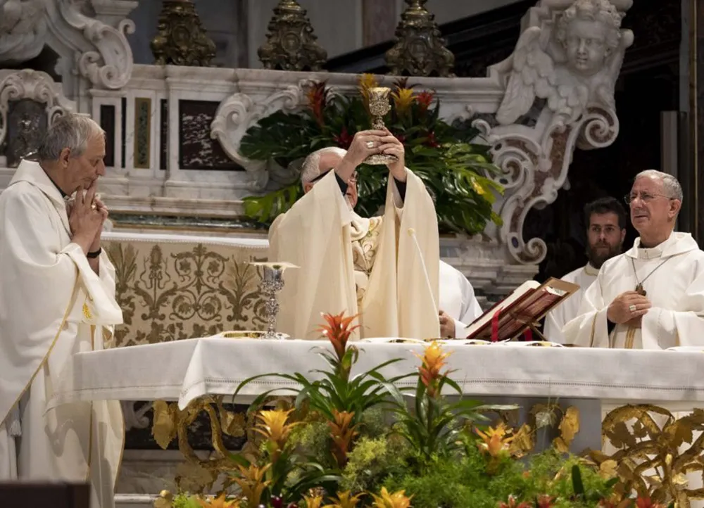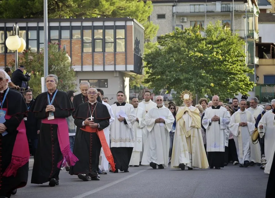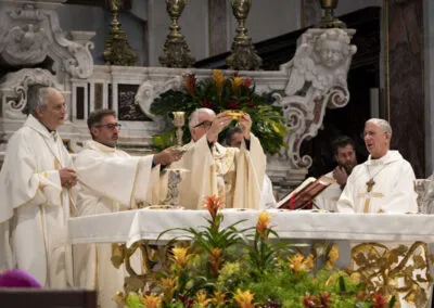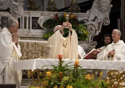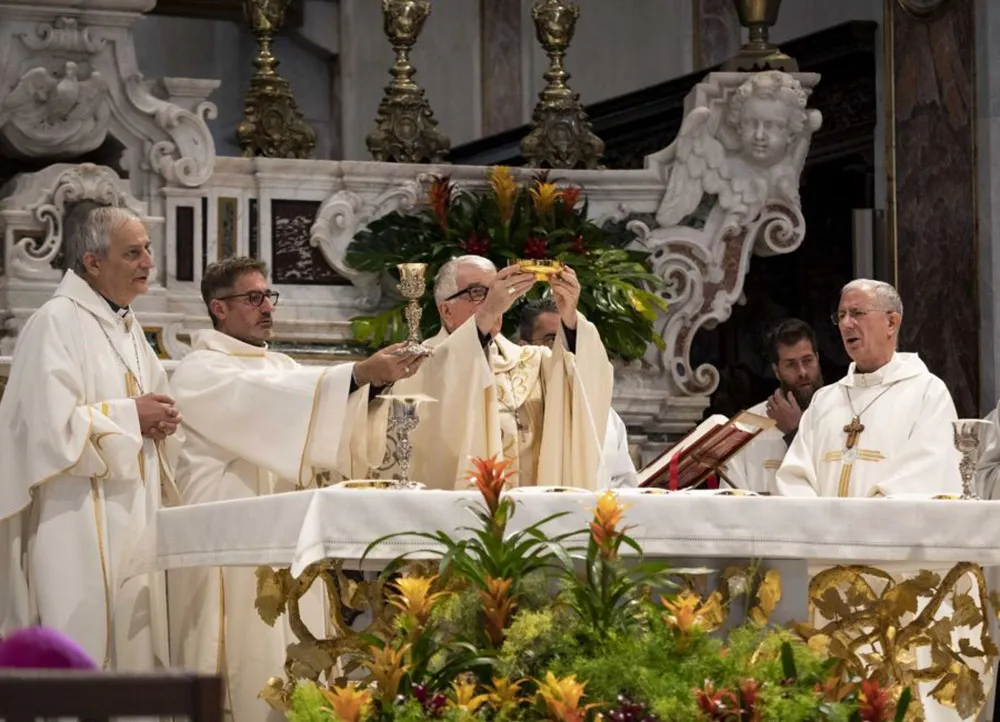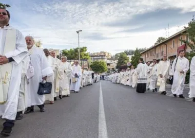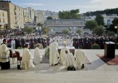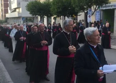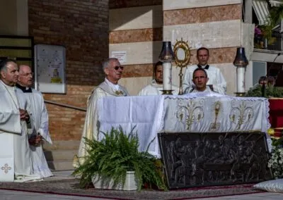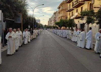 È stata presieduta dal nostro Arcivescovo, S. Ecc. Mons. Antonio Giuseppe Caiazzo. L’Eucaristia è stata portata in processione da Mons. Francesco Savino e da Mons. Erio Castellucci, Vicepresidenti della CEI, da Mons. Giuseppe Baturi, Segretario Generale della CEI, e da Mons. Gianmarco Busca, Presidente della Commissione Episcopale per la Liturgia.