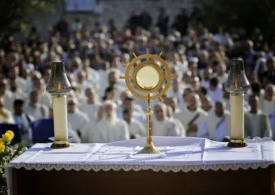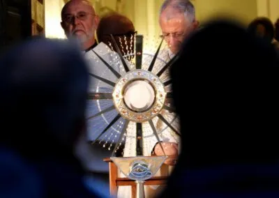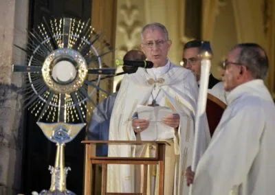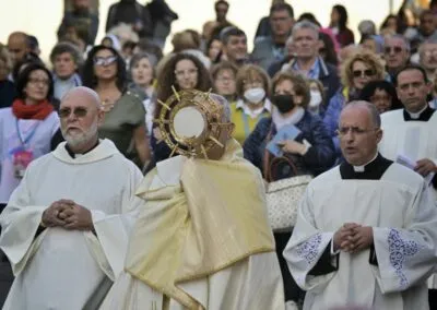 Una gioia che sarà ogni giorno sempre più vera e piena nella misura in cui quanto contempliamo e adoriamo nel cibo di vita eterna avverrà nei tanti ostensori che ci mostrano esposti quanti nella solitudine della loro vita restano chiusi nel loro dolore, nella loro passione, nel sentirsi emarginati.