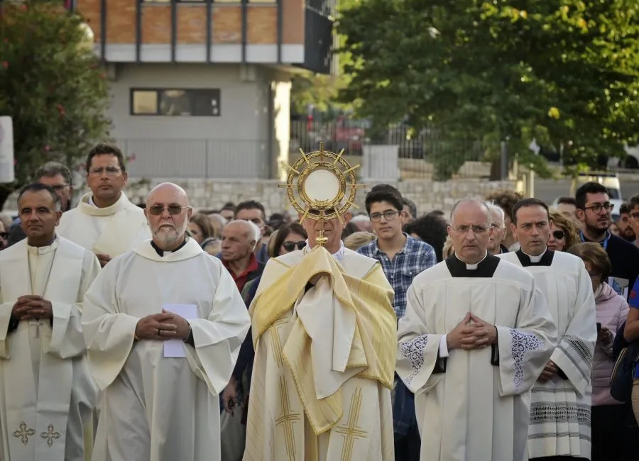 Nel pomeriggio, alle ore 17.00, si è svolta la Processione Eucaristica, partita dalla parrocchia San Pio X (in piazza Giovanni XXIII) e terminata in piazza San Francesco d’Assisi.