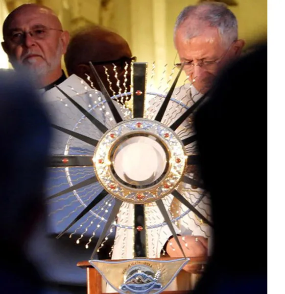 Nel pane eucaristico che stiamo adorando c’è sì il Cristo realmente presente e vivo, ma nudo, spogliato, abbandonato, crocifisso. Di certo questa adorazione deve portarci ad adorarlo e a commuoverci servendo la vita, sempre e comunque: dal suo concepimento al suo morire, rispettando le diverse fasi della stessa vita.
